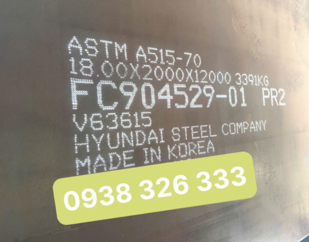 Thép tấm ASTM A515/Gr70 là loại thép carbon chịu nhiệt, được sản xuất theo tiêu chuẩn ASTM (Hoa Kỳ) – chuyên dùng cho thiết bị nồi hơi, bình chịu áp lực, bồn chứa hóa chất, khí hóa lỏng (LPG), dầu khí, năng lượng và công nghiệp nặng.